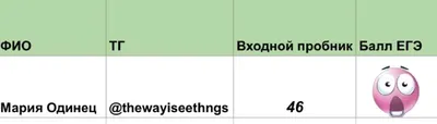 46 (входной пробник) 🔜 ?? (ЕГЭ) Угадай, на сколько баллов сдала ученица после Реанимации. Подсказка: если бы в прошлом году была программа «Крутой результат – крутые подарки», она бы могла выиграть