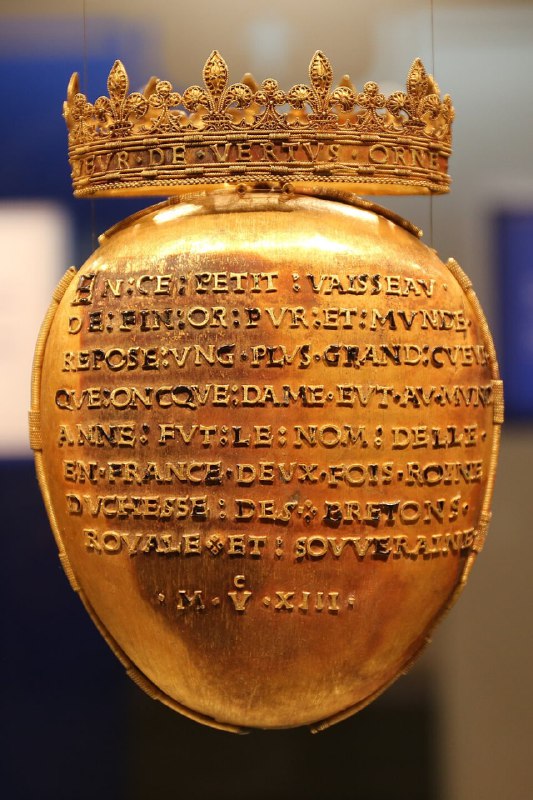 Реликварий с сердцем Анны Бретонской. Был изготовлен для выполнения последней воли Анны, которая завещала вернуть своё сердце в родной город Нант в гробницу её родителей. Надпись на короне: cvevr.