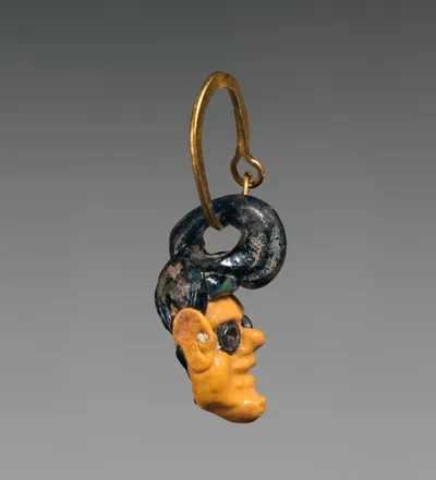 2000-летняя золотая серьга с неожиданно современной на вид подвеской. Принадлежит финикийской или карфагенской культуре. Подобные подвески использовались в качестве защитных амулетов для отпугивания