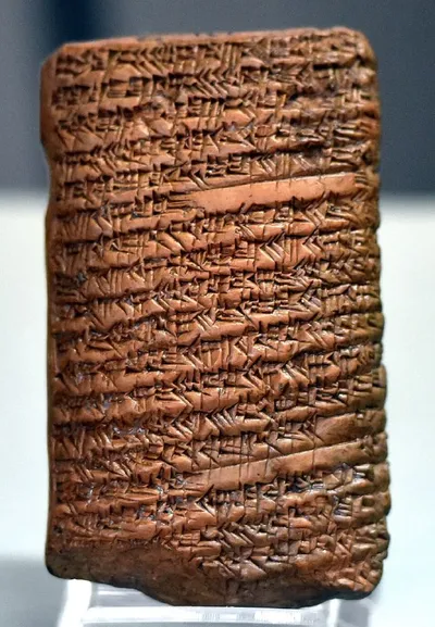 Db2-146. Древневавилонская глиняная табличка найденная в Багдаде. На ней, на аккадском языке, изложена геометрическая задача и её решение, каковое эквивалентно теореме Пифагора. Изложенная задача на