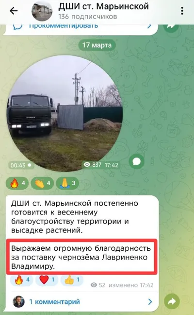 🔴1️⃣2️⃣3️⃣4️⃣5️⃣6️⃣7️⃣ ДШИ станицы Марьинской начала готовиться к благоустройству территории. При этом выражает огромную благодарность местному жителю за предоставленный чернозём. Но вот Новопашин