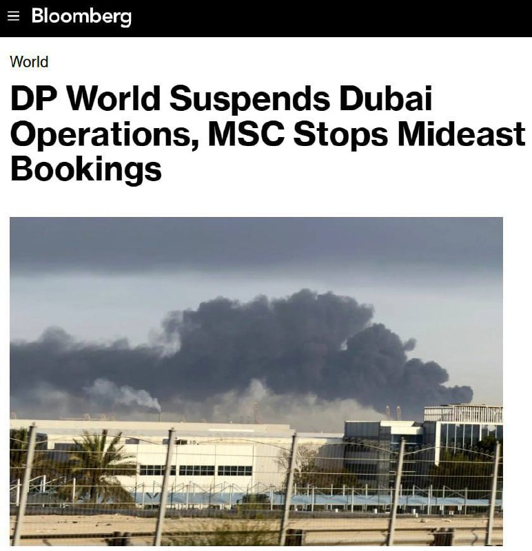 Bloomberg: удар Ирана привел к остановке работы порта «Джебель-Али» в Дубае, который входит в число крупнейших портов мира. В настоящий момент известно, что на его территории бушует сильный пожар, во