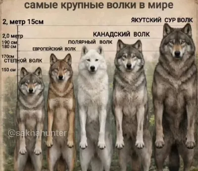 В данной подборке размеров якутский волк оказался крупнее полярного волка.