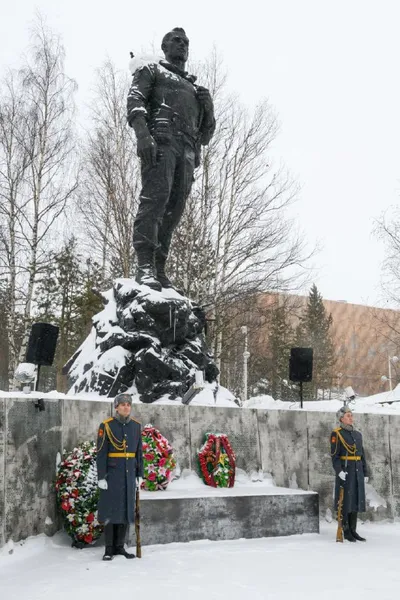 Глава Ноябрьска и участники чемпионата России по рукопашному бою возложили цветы к монументу Воину‑защитнику. Также Алексей Романов провёл для гостей небольшую экскурсию по скверу Опалённой юности.