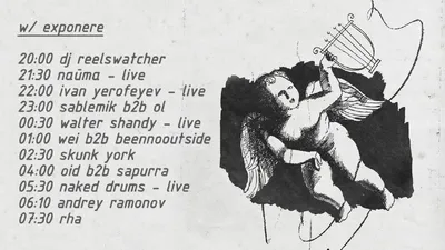 Сегодня w/ (ни)когда-нибудь: 18:00 svetlana gonchar 18:15 ansens 18:45 digital sisters 19:15 nikita shishkin 19:45 keuppia 20:15 viktor kertanov 20:45 gleb ivanov 21:15 alexander vasilenko 21:45 b