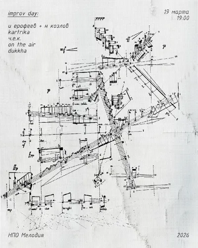 Март 19 w/ IMPROV DAY Концерт импровизационной музыки. Ерофеев + Козлов — дуо музыкантов с весомым электронным бэкграундом, в этот раз экспериментирующих с акустическими инструментами, ударные + тру