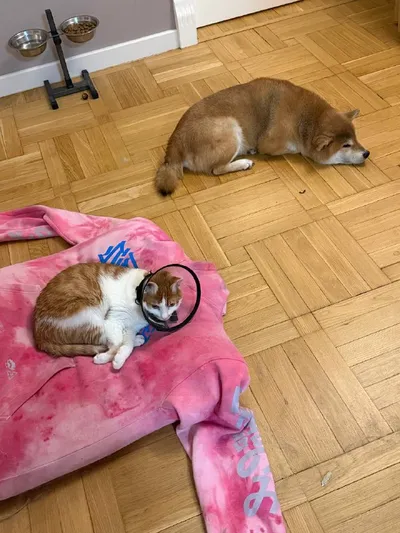 Он даже Хая свергнул с лежанки, есть еще сомнения по поводу того, что Наггетс главный в этом доме? (Да, у Хая вместо лежанки огромная подушка, на которую я натянула худос, потому что его старая лежан
