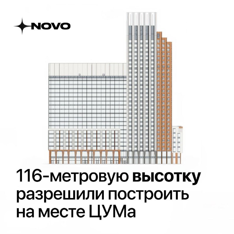 🏙️ 116-метровую высотку разрешили построить на месте ЦУМа мэрия одобрила строительство крупного многофункционального комплекса — по проекту здесь вырастут сразу три здания. главным объектом станет