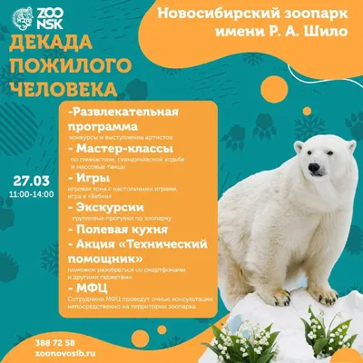 📆 Декада пожилого человека в Новосибирском зоопарке стартует 27 марта и продлится до 10 апреля! 🎉 Мы приглашаем вас на торжественное открытие декады — 27 марта с 11:00 до 14:00! Специально для вас