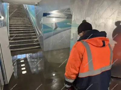 Вчера подземный переход на вокзале оказался затоплен талыми водами. По информации администрации, причиной стала остановка насоса из-за отключения электричества. Сейчас проблему устранили, вода почти