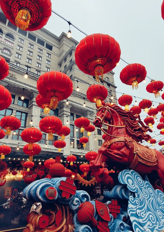 Китайский Новый год в Москве😀 Успели посмотреть на эту красоту! Прямо у стен Кремля, на Охотно ряду, расположился кусочек настоящей Азии с ароматной китайской едой и фруктами в карамели, обилием кра