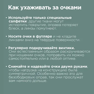 Мы подготовили простую памятку по уходу за очками — чтобы они всегда радовали идеальным видом ❤️ Если очки пострадали или есть вопросы — приносите в наши бутики на Страстном бульваре, 2, в ТРЦ«Европе