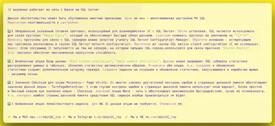 1C медленно работает по сети с базой на SQL Server Данное обстоятельство может быть обусловлено многими причинами. Одна из них - неоптимальная настройка MS SQL. Перечислим неоптимальности в настройке
