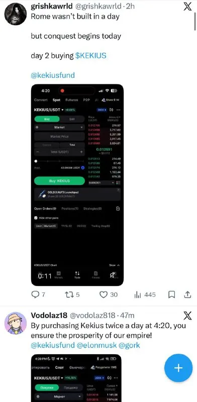 конкурс на мемы. кидаем в комменты мемы на англе про попкупку кекиуса в 4:20, далее распространяем в любой непонятной ситуации. призовой пул 20к кекиусов: https://x.com/kekiusfund/status/20317437493
