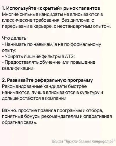 2️⃣🔠 стратегия подбора персонала для найма сильных специалистов На словах найм выглядит просто: разместили вакансию, посмотрели резюме, сделали оффер. На практике — хорошие кандидаты не откликаются