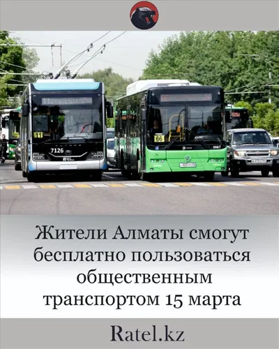 Бесплатный проезд будет действовать на всех маршрутах городского общественного транспорта В Алматы 15 марта пассажиры смогут пользоваться общественным транспортом бесплатно. В связи с проведением Рес