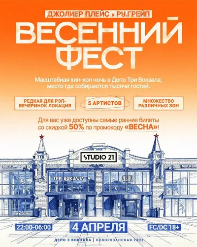 ДЖОЛИЕР | ВЕСЕННИЙ ФЕСТ 📍ТРИ ВОКЗАЛА. ДЕПО 04.04 | 23:00-06:00 | FC/DC18+ Серия громких вечеринок подряд продолжается! Мы вошли в азарт. 4 апреля встречаемся на редкой для хип-хоп вечеринок локац