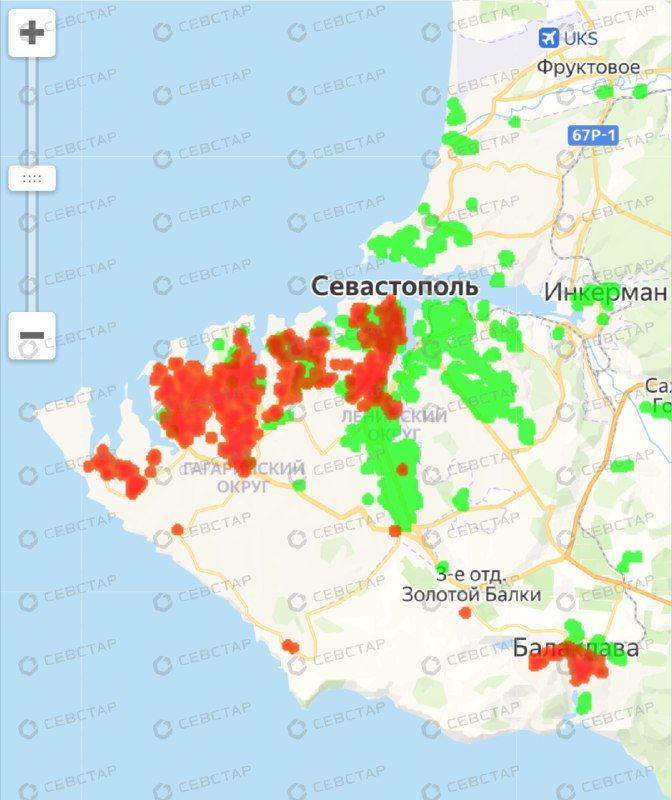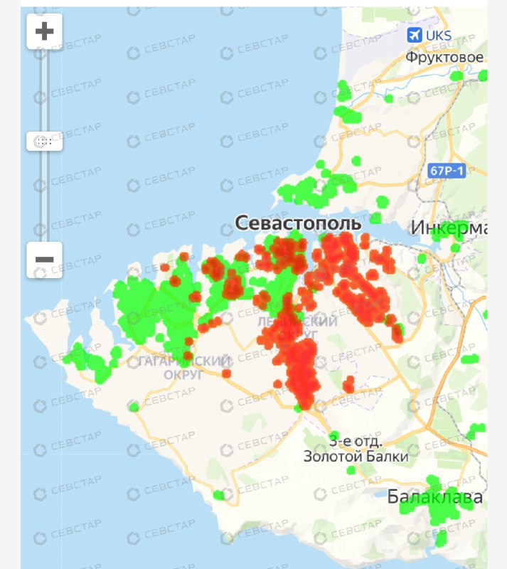 ⚡️ Электричества всё ещё нет в некоторых районах Севастополя. Карта Севстара работает некорректно.