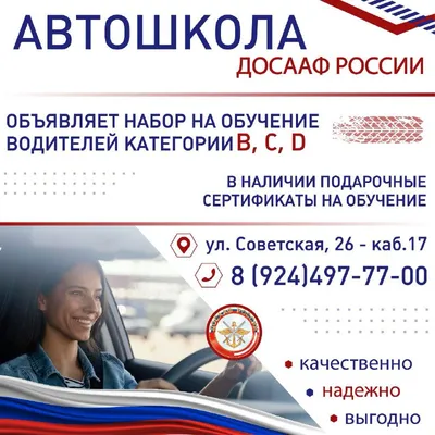 ОХА! Автошкола ДОСААФ набирает группы на обучение водителей категории «В», «С», «D», переподготовку с «В» на «С», с «В» на «D», с «С» на «D», категорию «А1» (квадроцикл, снегоход), тракторист катег