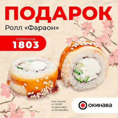 ❤️❤️❤️❤️❤️❤️❤️ Ролл "Фараон" в подарок! по промокоду 👉🏻 1803 Ролл "Фараон" в подарок по промокоду 1803 на доставку и самовывоз от 1590 руб! *Промокод не суммируется с другими промокодами, комбо,