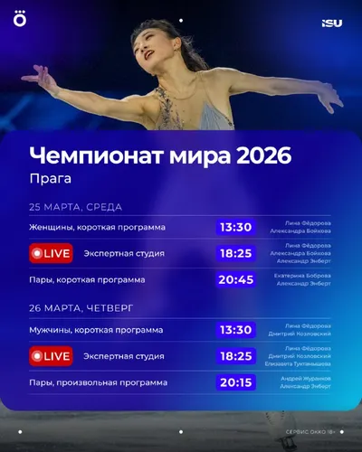 🌎 Сезон нельзя считать завершенным без чемпионата мира. Даже после Олимпиады туда приедут топовые фигуристы. Смотреть за их борьбой будем в Okko. Сохраняй расписание, не пропускай трансляции и наши