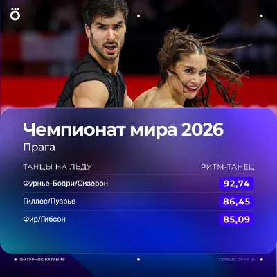 💪 Олимпийские чемпионы ворвались в борьбу с личным рекордом. Отрыв Лоранс и Гийома очень ощутимый. Канадские бронзовые призеры ОИ на второй строчке, британский дуэт Фир/Гибсон следом.
