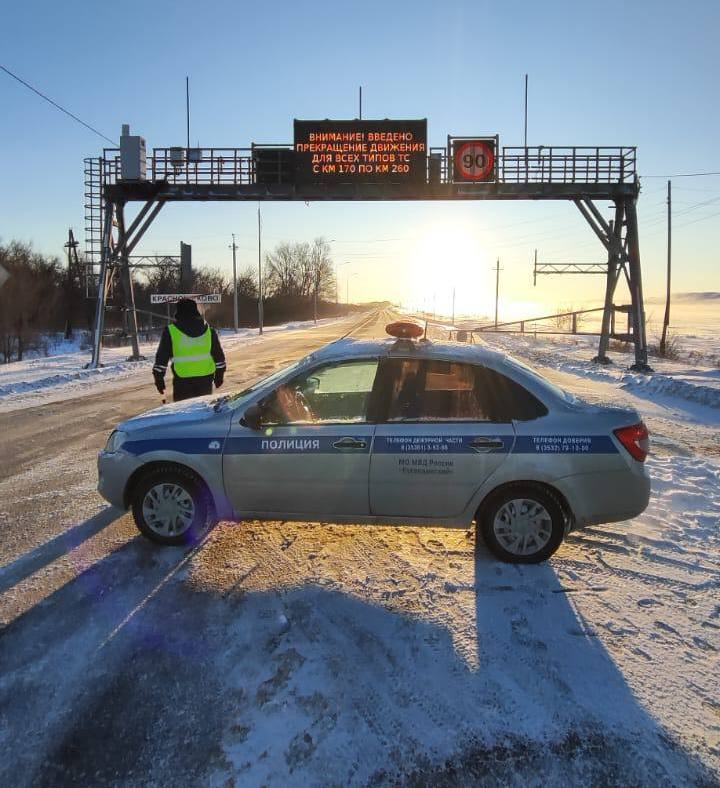 Продлено с 18:00 4 марта ориентировочно до 10:00 5 марта ограничение движения на трассе Оренбург-Орск от Краснощеково до подъезда к Орску и на выезде из Медногорска на трассу.