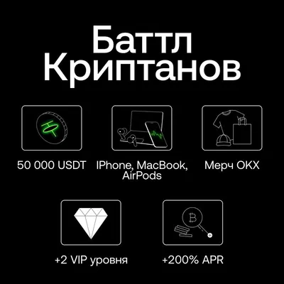 ⚔️ 7 дней до завершения Баттла Криптанов: успейте забрать ваши награды! 🏆 Для всех трейдеров Награды в USDT, техника Apple, эксклюзивный мерч! ✌️ Бонус для новичков Ваучер на повышенную APR до 200%