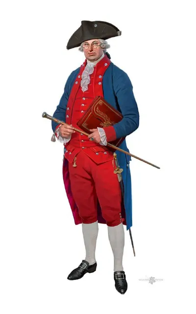 Классный чиновник военного ведомства, служащий по провиантской части, конец 1780-х - начало 1790-х гг. Художник Николай Зубков. Подробнее о форменной одежде чинов Императорского двора, придворных кав