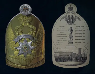 Меню торжественного обеда в честь 100-летия Лейб-гвардии Павловского полка. 28 мая 1890 г. Выполнено в форме гренадерской шапки См. Инна Малахова «Меню торжественных полковых обедов из коллекции А.М.