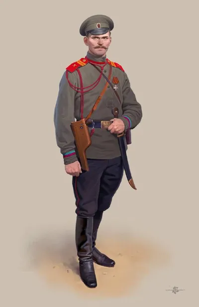 Младший фейерверкер пулемётной команды Отдельной батареи охраны Царской Ставки. 1916-1917 гг. Рисунок Николая Зубкова. К началу XX века охрана императорской семьи осуществлялась различными воинскими