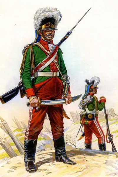 Гренадер Екатеринославского гренадерского полка, вооружённый ружьем с круглым штыком и саблей «образца 1790 и 91 годов». 1792 г. Художник Игорь Дзысь. Проводя в 178З-1786 гг. масштабную военную рефор
