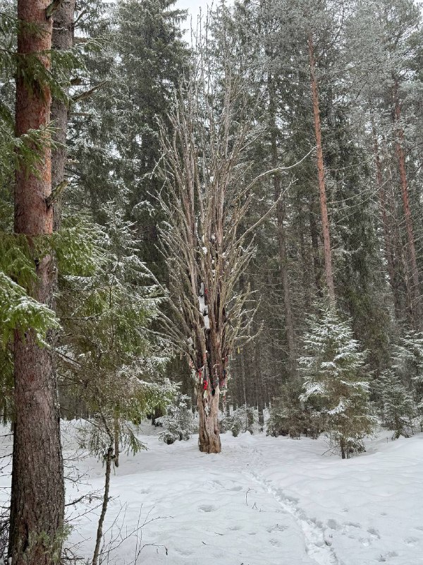 Если кто вчера подумал, что это лиственное дерево, вы ошиблись 🤭 🌲Это сосна многоствольная. Ооочень старая и поэтому уже высохла. А так у неё раньше были такие же иголочки, как у обычной сосны, во