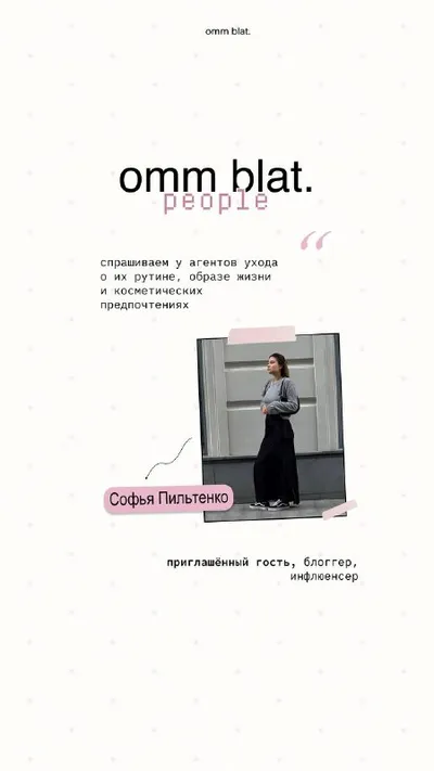новый выпуск рубрики люди omm blat. 🧈 сегодня мы задали несколько вопросов агенту ухода Софье Пильтенко как вам эта рубрика? — 💛 нравится, продолжайте! — 😱 не нравится узнавать о предпочтениях