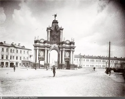 Ну а эти воротам, Красным, повезло не очень. Их в итоге снесли в 1920-х годах. Интересно, что попытки предпринимались в том числе и в 19 веке. Но успешными не были. Это вид в сторону Садовой-Черногряз