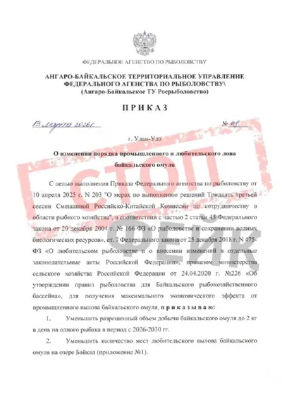 В Росрыболовстве опровергли слухи о допуске китайских рыбаков к вылову омуля В мессенджерах и социальных сетях распространяется недостоверная информация о якобы разрешении китайским предприятиям пром