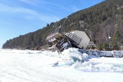 На Байкале лед выдавил на берег причал и дом с научным оборудованием лимнологов В поселке Большие Коты подвижки льда свернули и выдавили на берег причал полевого стационара Лимнологического института