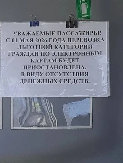 В автобусах Байкальска появились такие объявления. Напомним, перевозчики по всей области планируют отменить проезд по ЕСПБ (единый социальный проездной билет) из-за долгов регионального правительств