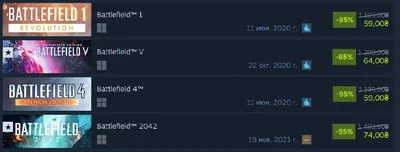 Все последние части, кроме Hardline, получили 95% скидку спустя 214 дней без каких-либо акций на фоне релиза Battlefield 6 Полный набор можно приобрести за 460 рублей, если хотите опробовать другие и