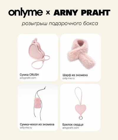 Встречаем весну подарками сразу от двух ваших любимых брендов Only Me х Arny Praht 🩷 Все, кто совершит покупки в магазинах или на сайтах only-me.ru х arnypraht.com с 10 по 22 марта на сумму от 8000₽