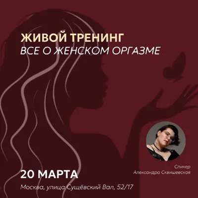 Важное напоминание, что уже завтра живой тренинг «Все о женском оргазме» 📆 Дата: 20 марта ⏱️Время: 19:00 сбор гостей 📍Адрес: Москва, Сущевский вал, 52/17 Ведущая - сексолог, ведущая лекций и деви