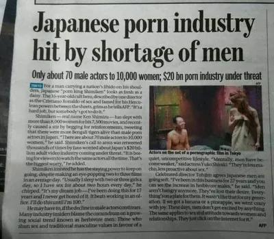 В японском порно жёсткий дефицит мужчин — девушек в индустрии для взрослых в сотни раз больше, чем парней. В сети вспомнили статью 2017 года о том, что на 10 000 женщин приходится 70 мужчин, из-за че