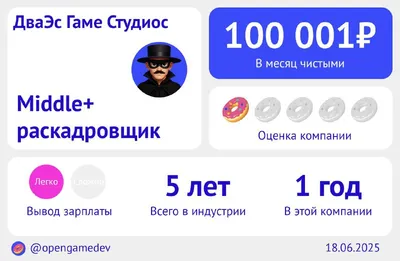 Зарплата 100 001₽ у Middle+ раскадровщик в ДваЭс Гаме Студиос Круг твоих обязанностей? Полный цикл пре-продакшена для катсцен. Адаптация сценария, блокинг сцены (с точки зрения режиссуры, не 3д), отр