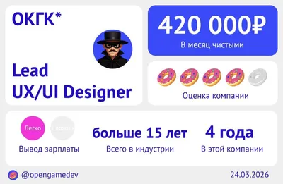 Зарплата 420 000₽ у Lead UX/UI Designer в Одной Крупной Геймдев Компании В какой ты стране? Россия Круг твоих обязанностей? Всё как у хороших лидов (по моему мировоззрению): Держу вижн по интерфейса