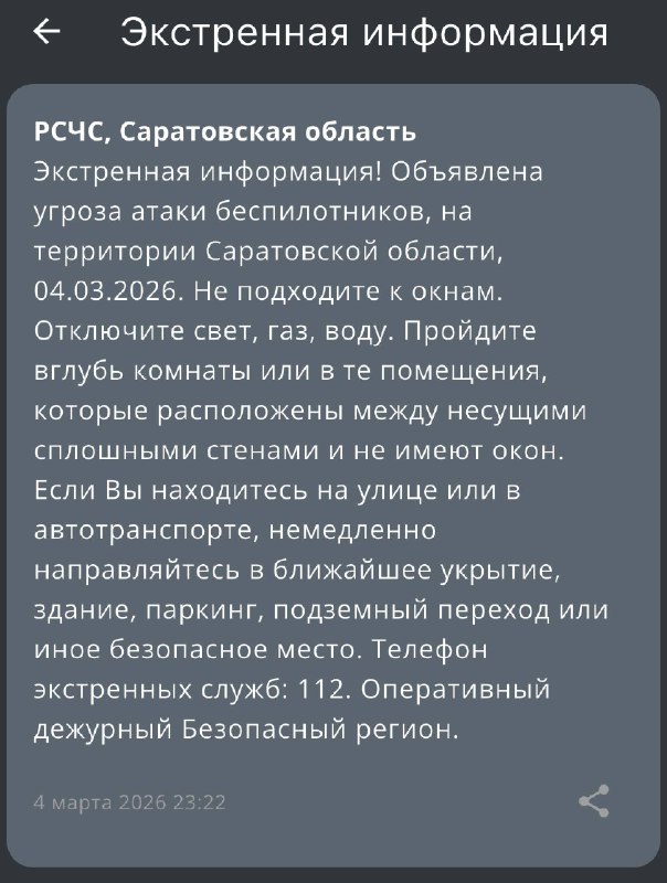 Угроза атаки беспилотников, сообщает теперь РСЧС
