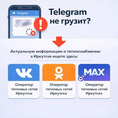 Иногда мессенджеры подводят, и срочные новости не доходят вовремя. 😓 Чтобы вы всегда были в курсе плановых и аварийных отключений тепла и горячей воды в Иркутске, мы дублируем всю важную информацию