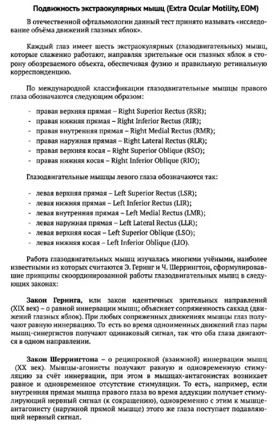 Подвижность экстраокулярных мышц и виды движений глаз
