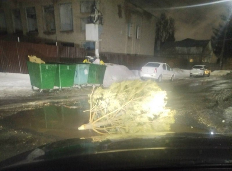 ❗️На выезде с Энгельса водители своими силами обозначают опасную яму на дороге. Водители, уставшие ждать ремонта, пытаются обезопасить друг друга подручными средствами: сначала в яме лежала старая по