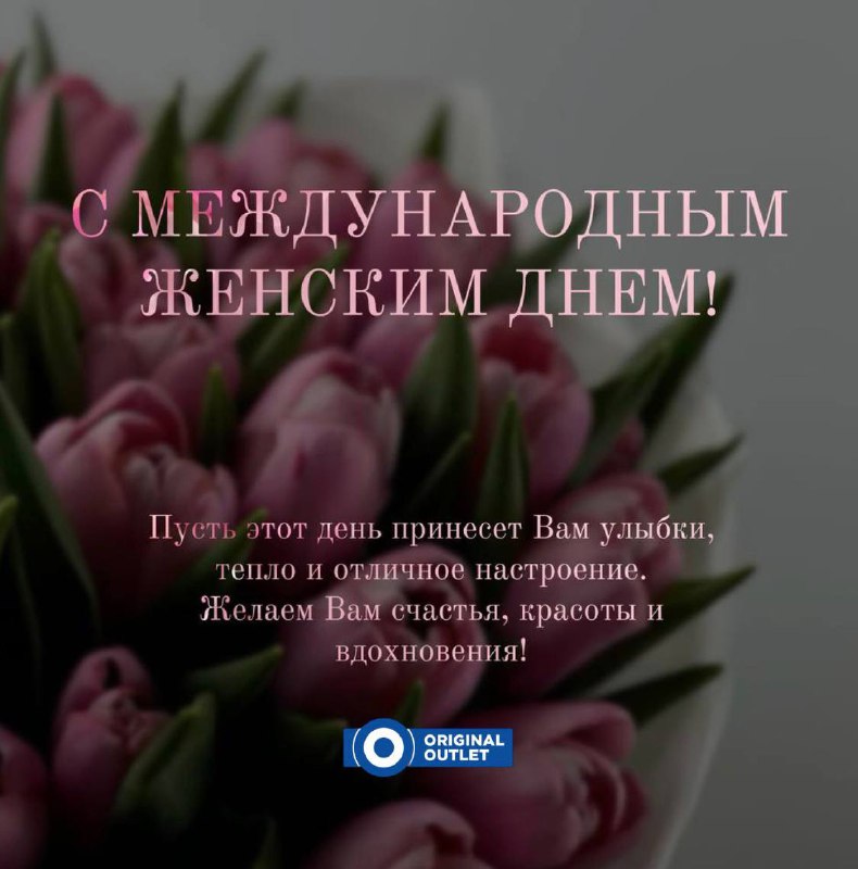 С 8 Марта! 💐 Дорогие дамы, команда Original Outlet поздравляет Вас с этим прекрасным весенним праздником! Пусть в Вашей жизни будет больше улыбок, тепла, любви и радости. Пусть каждый день дарит В