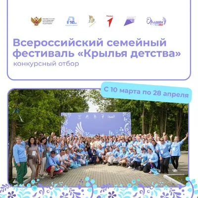 Взлетаем всей семьёй! С 10 марта по 28 апреля пройдёт конкурсный отбор на участие во Всероссийском семейном фестивале «Крылья детства», который запланирован к проведению с 5 по 9 августа в Московской